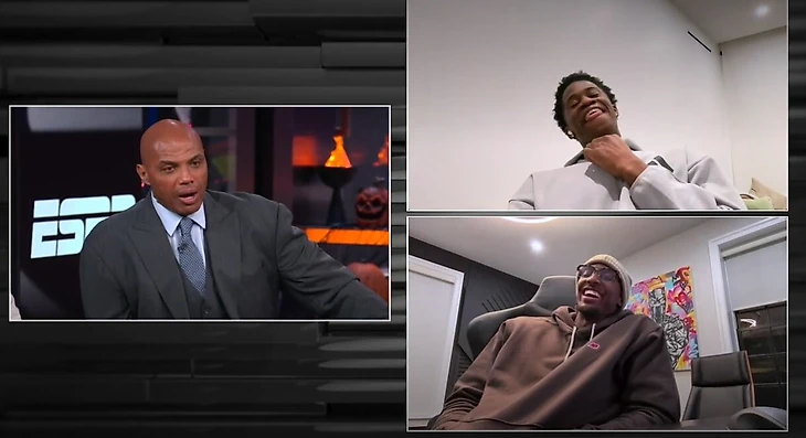 Во время эфира ESPN дуэт из задней линии «Филадельфии» подключился к интервью из своих квартир. Пустая комната новичка Ви Джей Эджкомба ярко контрастировала с кабинетом Тайриза Макси.