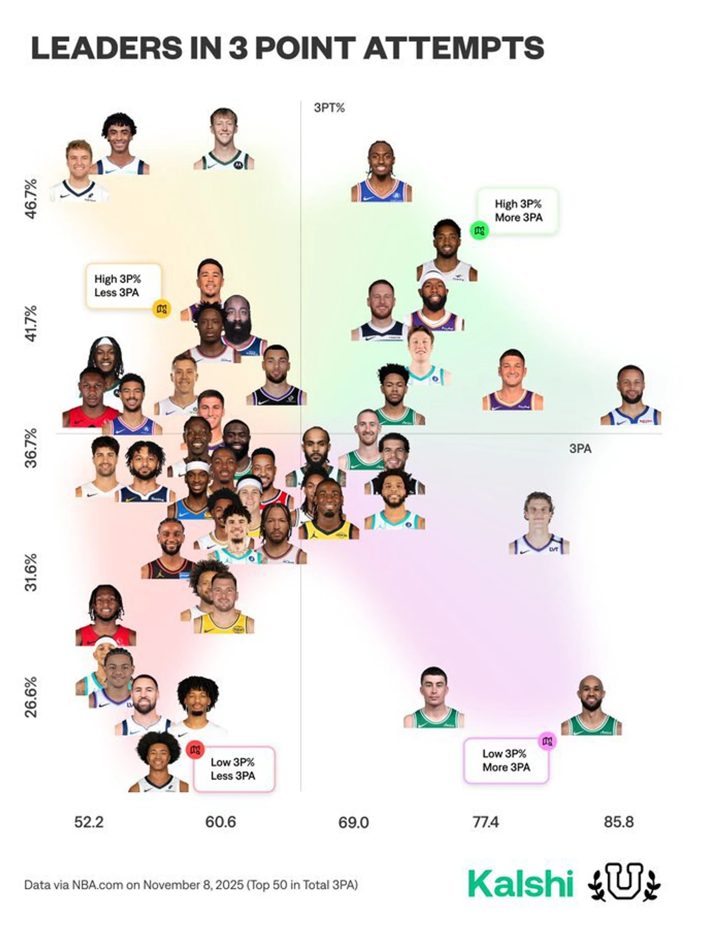 Донован Митчелл и Тайриз Макси – лучшие, задняя линия «Бостона» – худшая по сочетанию трехочковых попыток и точности из-за дуги