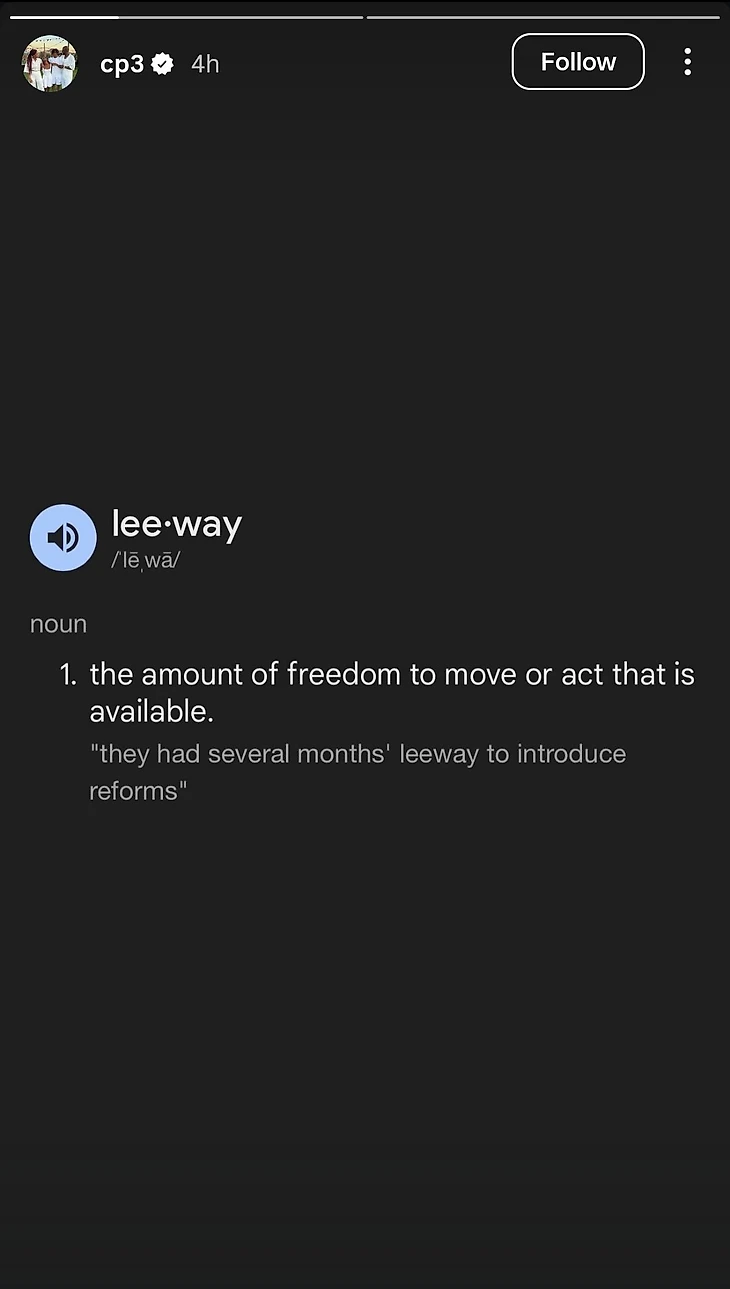 Разыгрывающий запостил скриншот со значением слова «leeway» (в данном случае – свобода действий): «доступная свобода передвижения и действий».