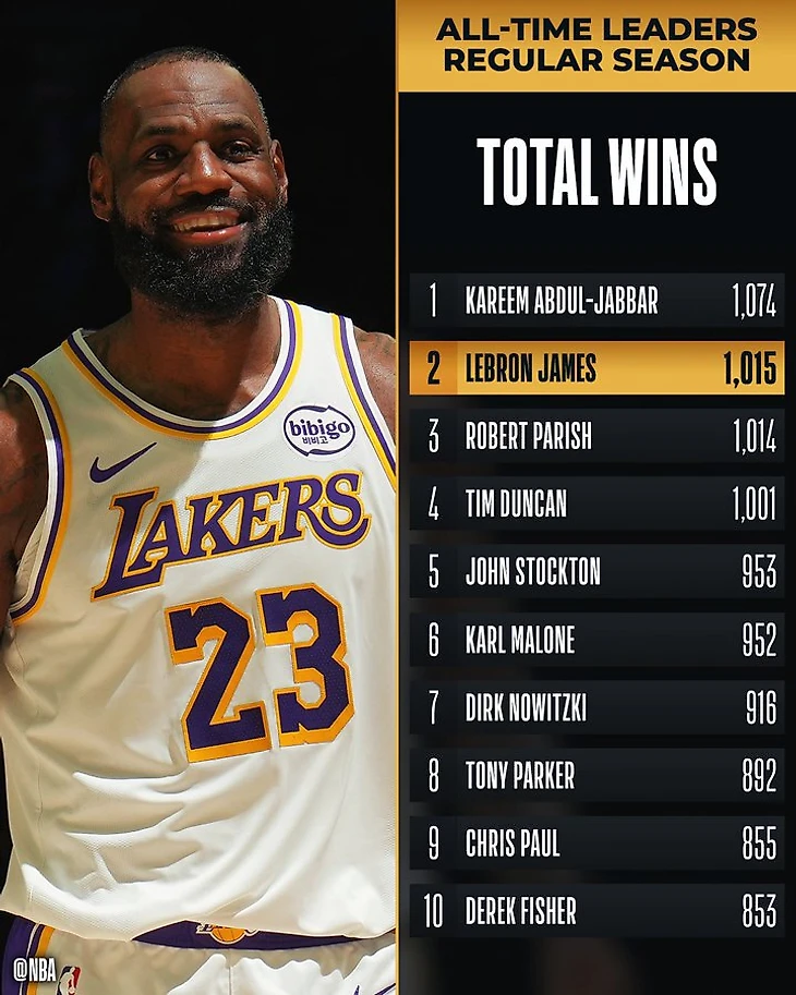 Эта победа стала для Джеймса 1015-й в регулярных сезонах и позволила ему обойти легенду «Бостона» Роберта Пэриша в списке лучших по этому показателю в истории НБА.