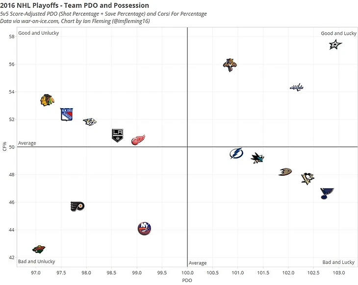 PDO команд плейофф НХЛ 2016. Удачливым везет!