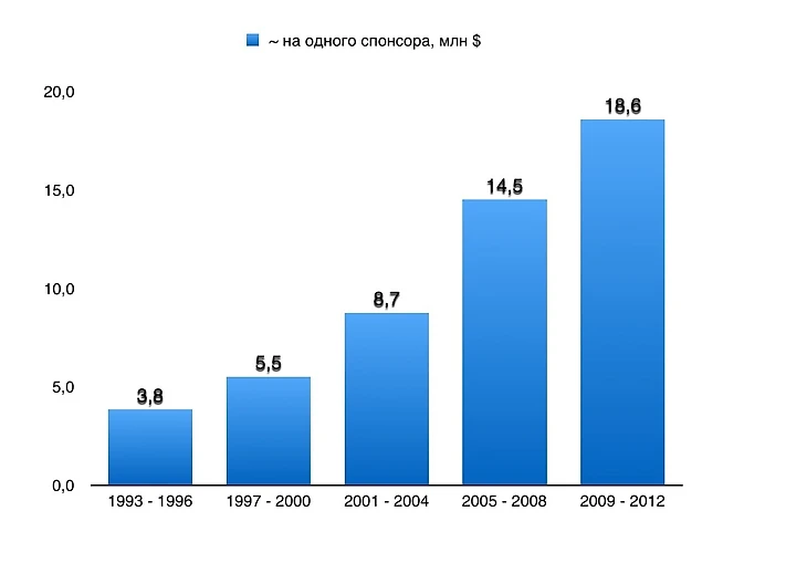 Динамику роста суммы спонсорских контрактов нагляднее видно на графике: