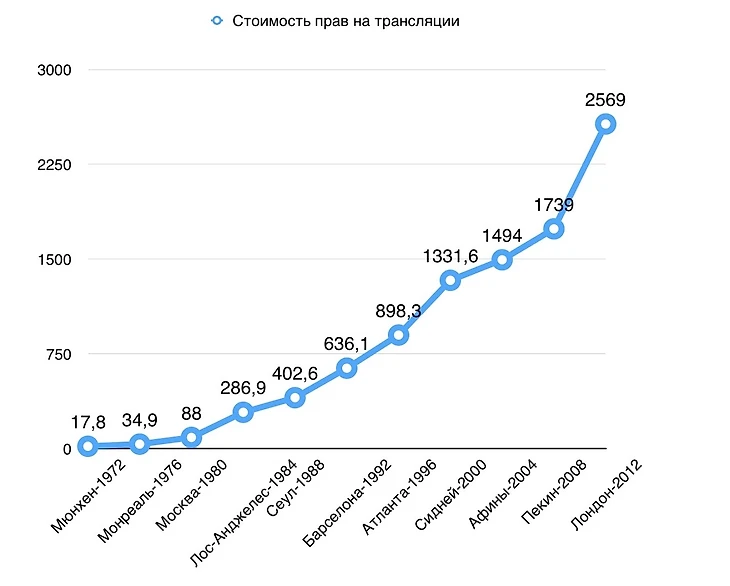 Тогда же сумма, вырученная за продажу прав на трансляции летних Игр, перевалила за миллиард долларов и пошла выше. За Лондон-2012 удалось выручить уже больше двух миллиардов. Сравнимо с телевизионными контрактами NBA и АПЛ:
