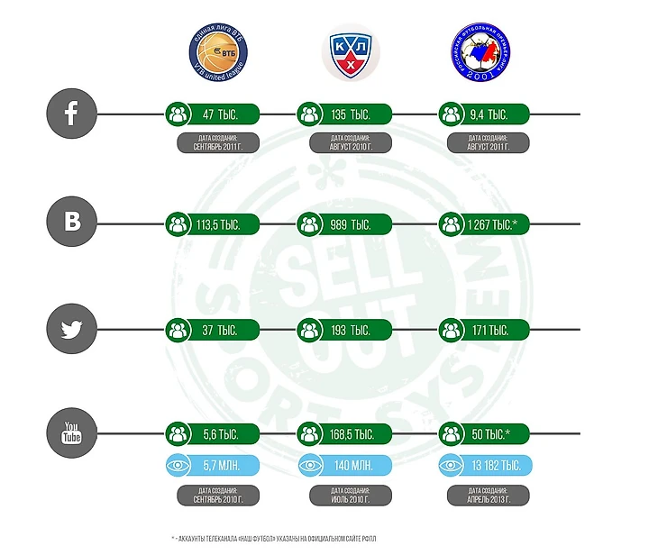 Для понимания расстановки сил достаточно посмотреть на количество подписчиков лиги ВТБ, РФПЛ и КХЛ в наиболее популярных соцсетях.