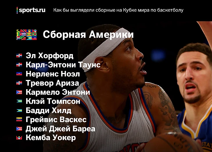 На двух американских континентах тоже есть страны, готовые кого-нибудь натурализовать под мифический Кубок мира. Хорфорд и Таунс представляют Доминиканскую республику, Тревор Ариза тоже мог бы, если бы захотел; к Бареа в сборную Пуэрто-Рико мог бы поехать так часто распространяющийся о своем латиноамериканском происхождении Кармело; к Хилду в сборную Багамских островов – Клэй Томпсон (как-никак, Майкл Томпсон родился именно там); да и Нерленс Ноэл с Кембой Уокером могли бы представлять родину родителей – Гаити и Антигуа и Барбуду соответственно.