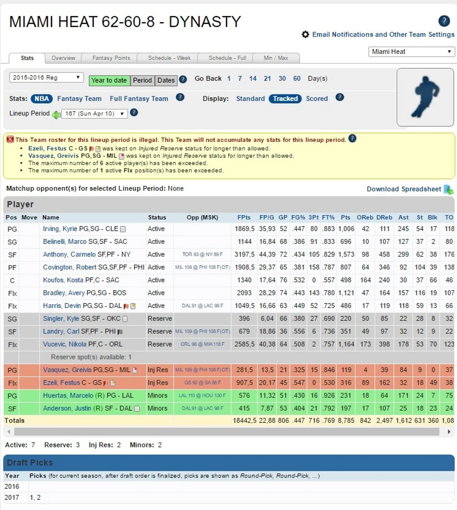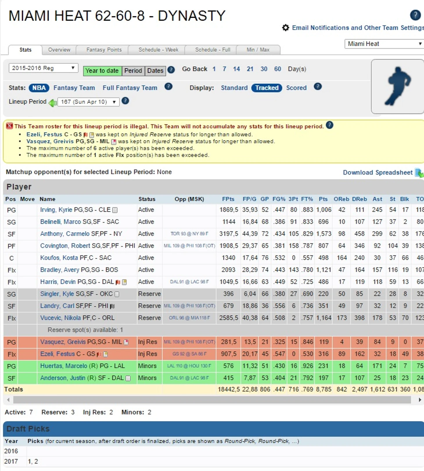Неплохой выбор в первом раунде, хотя можно было обратить внимание и на Коли-Стайна с Портисом. Во втором раунде в Майами переехали почти все опытные игроки, кто хоть как-то умел держать мяч. Хотя можно было украсть Капелу. Но в целом все чинно, это вам не Бузер 6-ым общим!