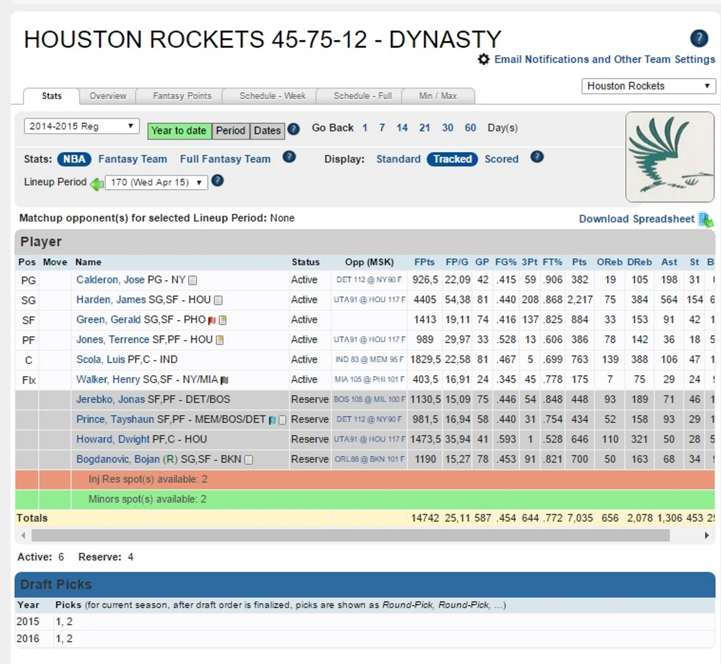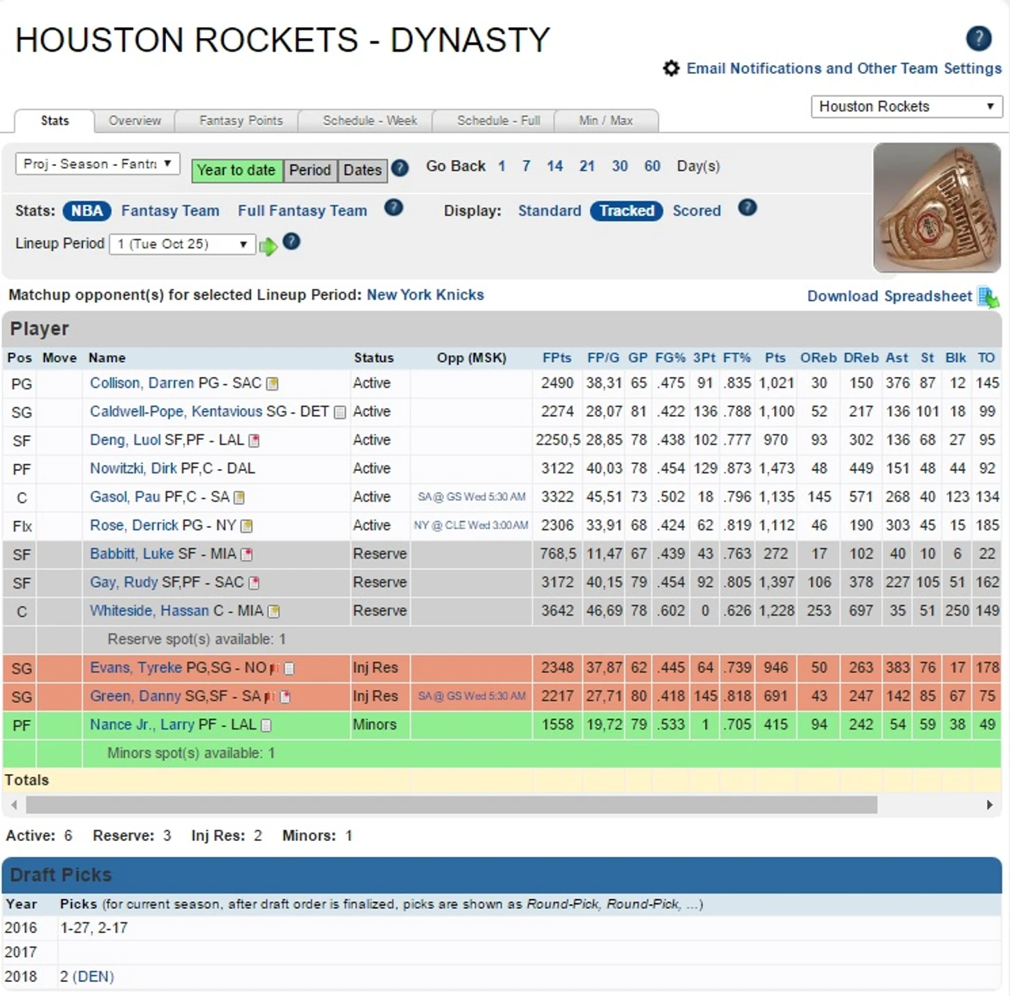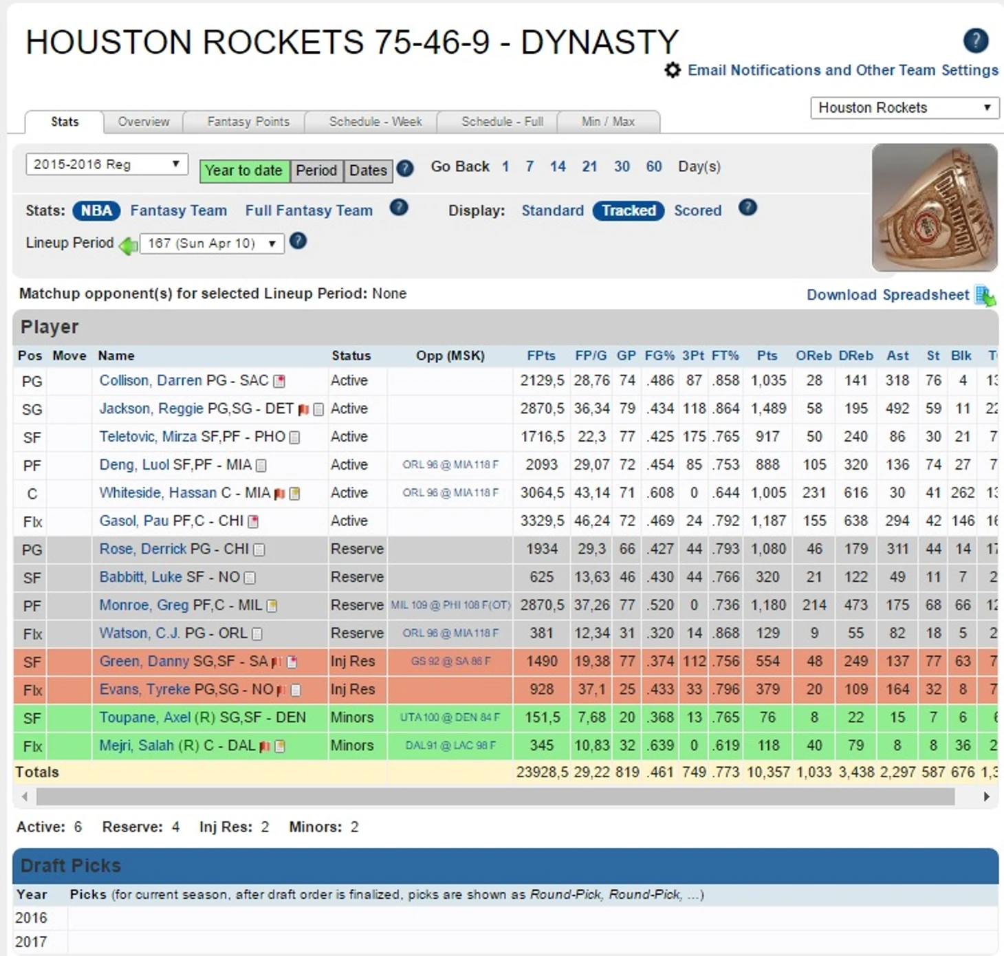 Продолжаем цикл статей о нашей Fantrax-лиге. Как уже было сказано в статье про Майами Хит, сегодня нас ждет одно из главнейших ежегодных событий – драфт новичков. Но один ГМ пройдет мимо этого праздника жизни, ибо не сохранил ни одного пика. Хотя вот если трейдик…– Houston Rockets.