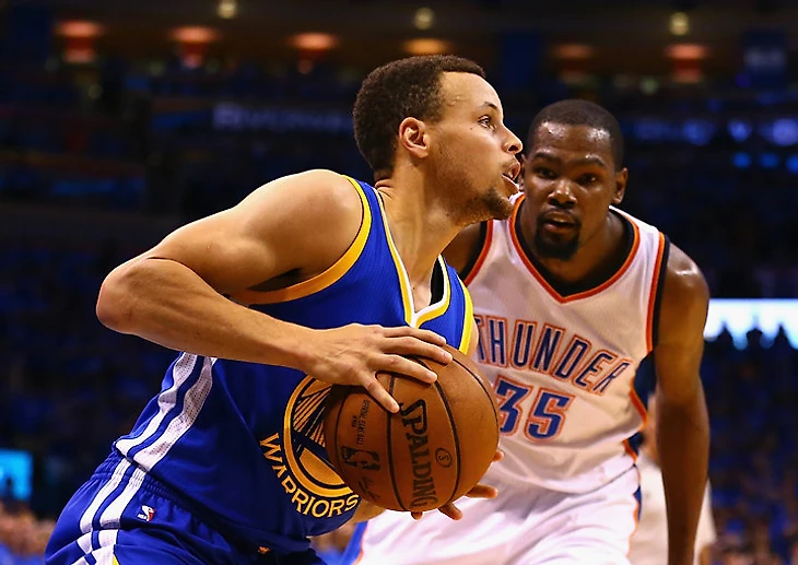 За эти четыре года он спокойно воспринимал то, что почти единолично стоял впереди своей команды, воюя бок о бок с единственным надежным бойцом — Расселом Уэстбруком. Каждый год «Тандер» заканчивали на несколько дюймов ниже более глубоких по составу команд в плей-офф. Последний, и самый болезненный из таких проигрышей, был совсем недавно от «Голден Стейт» в финале западной конференции. Движимые великолепным Дюрэнтом и Уэстбруком, «Тандер» повели в счете 3-1. Они не просто выигрывали, они измучили действующих чемпионов, выбивая их с дуги как кегли в боулинге. А затем внезапно все пошло под откос из-за трехглавого монстра во главе со Стефом Карри, Клэем Томпсоном и Дрэймондом Грином. В четвертой четверти уже почти выигранной шестой игры Дюрант и Уэстбрук начали мазать броски, в то время как Томпсон и Карри поймали кураж, забивая трехочковые броски из самых разных точек. «Как будто рука самого Бога коснулась тогда Клэя» – говорит Дюрант. «Он не мог промазать. А потом сошел с ума Стеф и... — ну… дальше вы знаете»