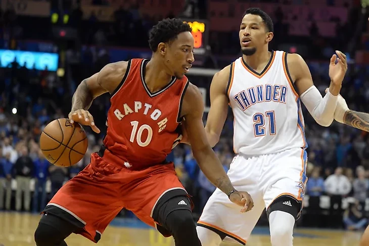 ДеМар ДеРозан просто жег на паркете и по-прежнему является самым результативным игроком регулярного чемпионата. Игру против «Тандер» защитник провел в уже привычном для себя стиле: 37 очков, 4 подбора, 6 передач и 3 перехвата. ДеМар последовательно забрасывал мяч в кольцо, вне зависимости от того, кто против него защищался. Что примечательно, ДеРозан не забросил ни одного трехочкового: кажется, что такого просто не бывает в современной НБА. Андре Роберсон игра на уровне сборной всех звезд защиты, но нападение лидера «Торонто» было заметно сильнее.