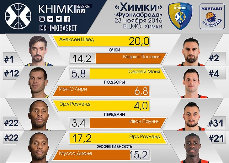 Лучшим в том матче стали любимец подмосковной публики Марко Попович и молодой центровой испанского клуба Мусса Диане.