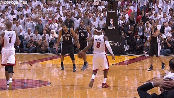 ...реакция на промазанный лэйап через Шейна Баттье, не позволивший Сан-Антонио сравнять счет на последней минуте 4 четверти 7 игры с Хит. Такого злого, раздосадованного на себя Тимми я не видел никогда, ни до ни после.