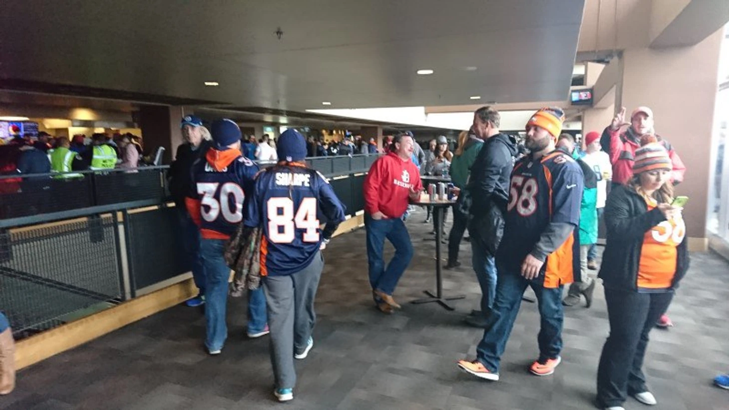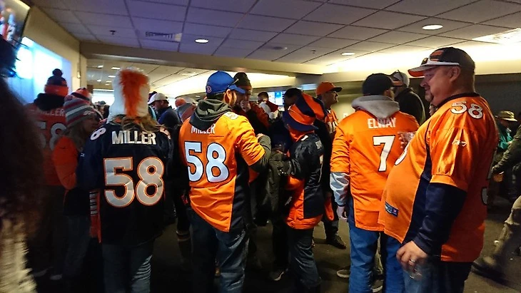С утра в день игры весь отель оказался забит людьми в оранжевой форме Денвера. Оказывается они приехали со всей страны на игру. Например одна большая семья (большая в буквальном смысле этого слова – два огромнейших мужика рядом с которыми я смотрелся хлюпиком, крупная женщина и годовалый ребенок – но все четверо в форме Денвера) приехали из Айовы – видимо там сельский воздух очень способствует такому развитию), потом еще встречал людей из Луисвила, Арканзаса, Айдахо – ну и конечно из разных городов Колорадо. Потом мы заказали автобус в даунтаун и он по дороге заезжал в разные отели и везде подхватывал группки болельщиков в оранжевых джерси. Совокупно думаю несколько тысяч человек на арене были в форме Денвера и они приехали поболеть за чемпионов отовсюду.