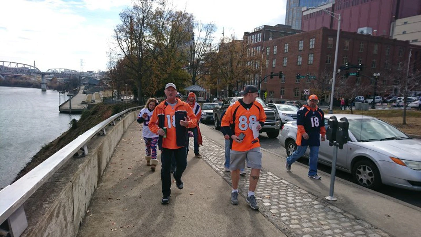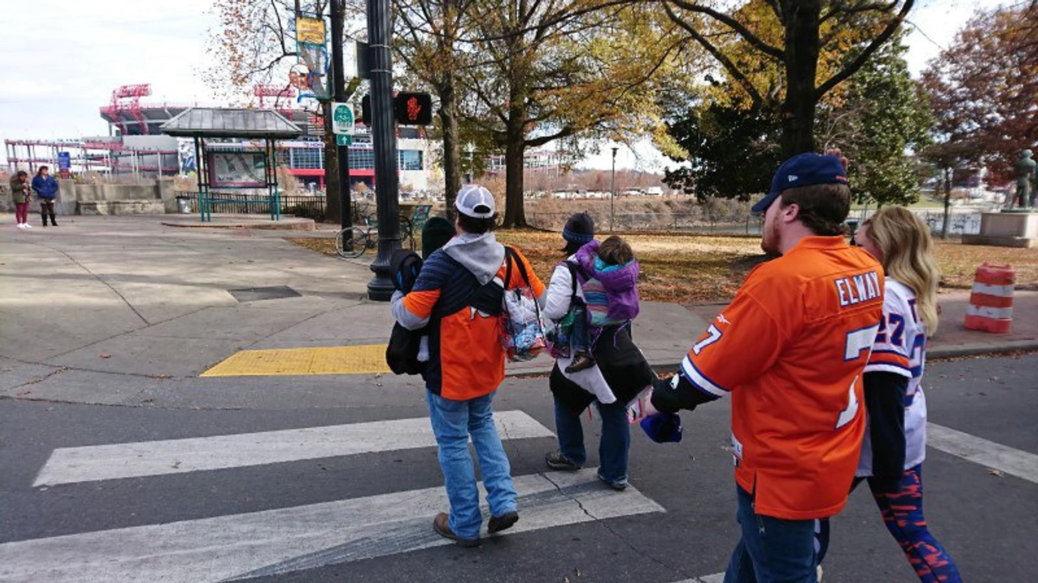 То что годового ребенка нарядили в джерси Денвера меня вообще не удивило – там реально модно ходить по городу в форме любимых команд – даже не на игры, а просто так. Постоянно и в Мемфисе и в Нэшвилле видел разных людей в разных джерси. Причем басктебольные в основном встречались перед игрой в Мемфисе – а вот футбольные можно увиветь где угодно – в аэропорту, в автобусе, в ресторанах и тд. Превалировал если не считать Титанов почему то Питтсбург. Говорят что Даллас это команда Америки – но если судить по количеству джерси наверное Стилерс самые популярные. Сан Франциско тоже распространены, а вот Чикаго в этот раз не видел. На игре тоже кроме Денвера и Теннессии видел людей в джерси разных других команд – так что не один я там был в джерси не играющей на поле команды.