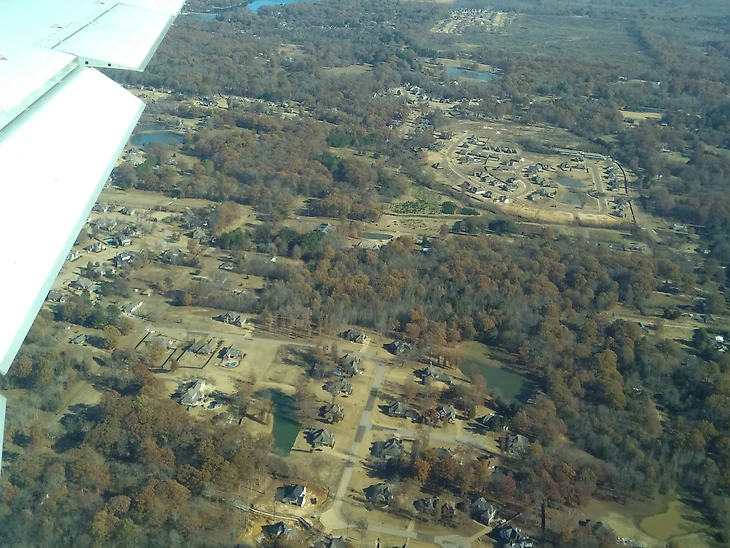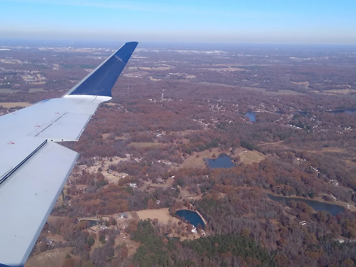 А вот виды декабрьского Мемфиса с самолета очень порадовали. Зеленые леса, зелёные луга, синее синее ясное небо, яркое солнце и чистые уютные пригороды с тысячами утопающих в окружающей зелени домиков. Даже завидно стало – что я не родился в этой глуши – где в декабре такая красота вокруг. Почему мы тут месяцами месим грязь и снег по колено под вечно серым небом, в холодрыге и в постоянной полутемноте, где по полгода серость, депрессуха и грусть – а там вот такая красота прямо в середине зимы? И это у них далеко не самый южный город – так, что-то в середине.
