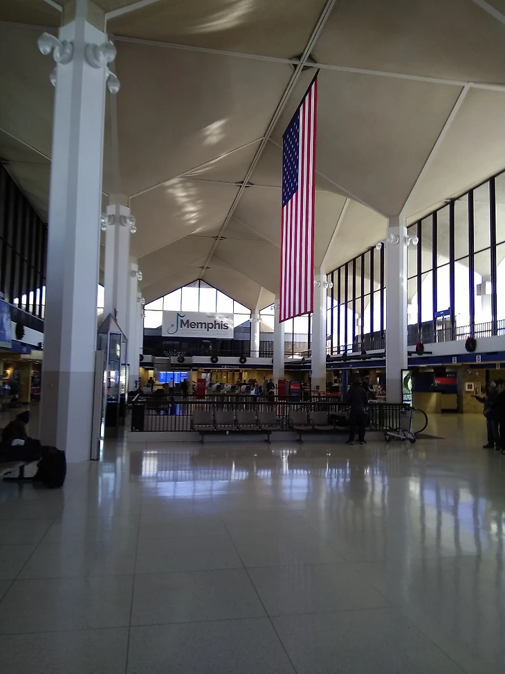 Кстати да – американский флаг тут наклеен практически на каждой машине, пришит почти к каждой джерси, висит на каждом небоскрёбе – и думаю наверное и на каждом доме в пригородах – в Тенессии это нормально. вот в Мемфисе наверное не знали как украсить аэропорт – там довольно скучно и кроме гитар Элвиса и посмотреть особо нечего – украсили как смогли – просто повесили на весь холл огроменный флаг. Ну вот такие они тут)