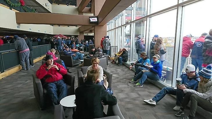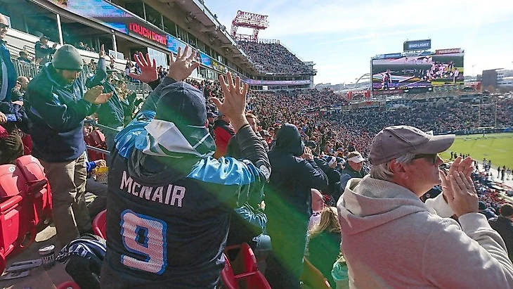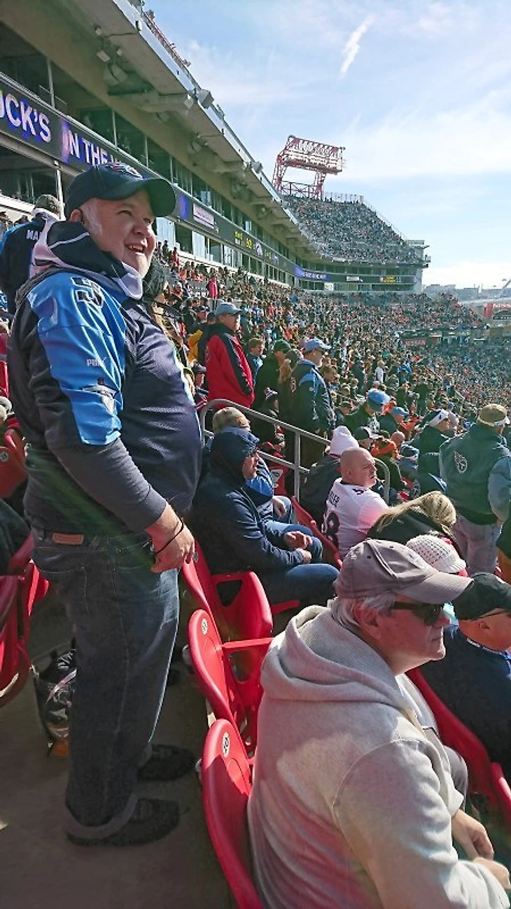 Особенно порадовал колоритный болельщик Титанов который сидел слева. Уже седой мужик – но невероятно энергичный. Весь матч постоянно вскакивал, кричал что-то, больше всех прикалывался, и вообще болел по настоящему. Постоянно отпускал шуточки в адрес НФЛ – мол они его Титанов специально не замечают, не показывают по ТВ, судят кое как и тд – но мол мы этому НФЛ еще покажем) веселый мужик) вообще как тут и положено в таких провинциальных местах люди очень не любят и даже презирают центральную власть, истеблишмент, столицы и все такое – а в данном случае еще и офис НФЛ, хотя сам футбол и своих Титанов они любят очень сильно. Еще раз о том что действительно можно сильно любить свою страну и одновременно ненавидеть правительство и центральную власть – у них тоже так как-то получается, как на примере футбола/НФЛ – так наверное и по жизни вообще (Трамп не даст соврать - именно эти провинциальные люди, сильно не любящие верхушку и Вашингтон и избрали его президентом как некий противовес элитам).
