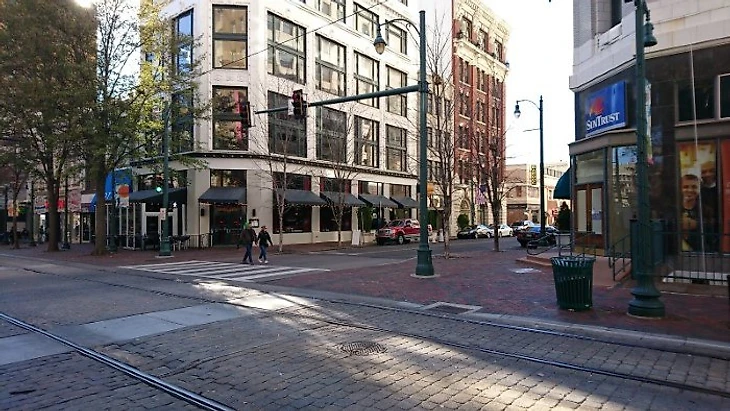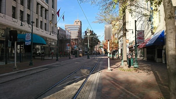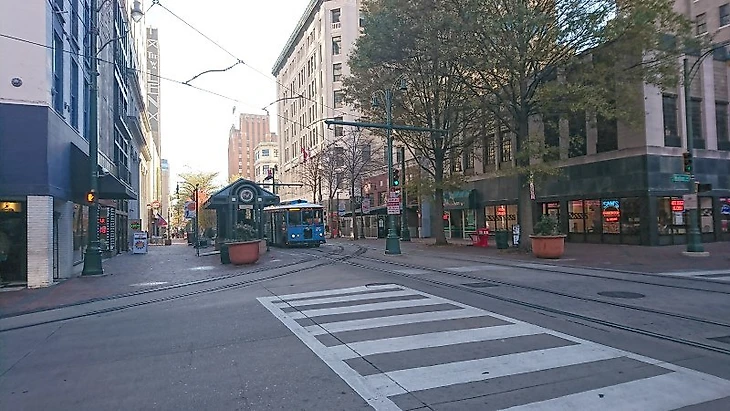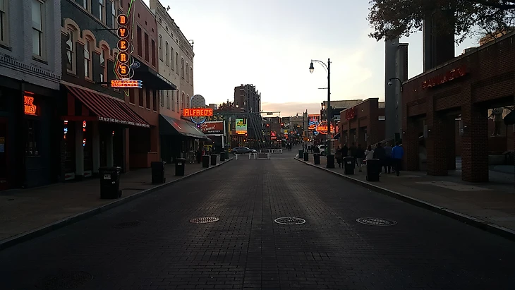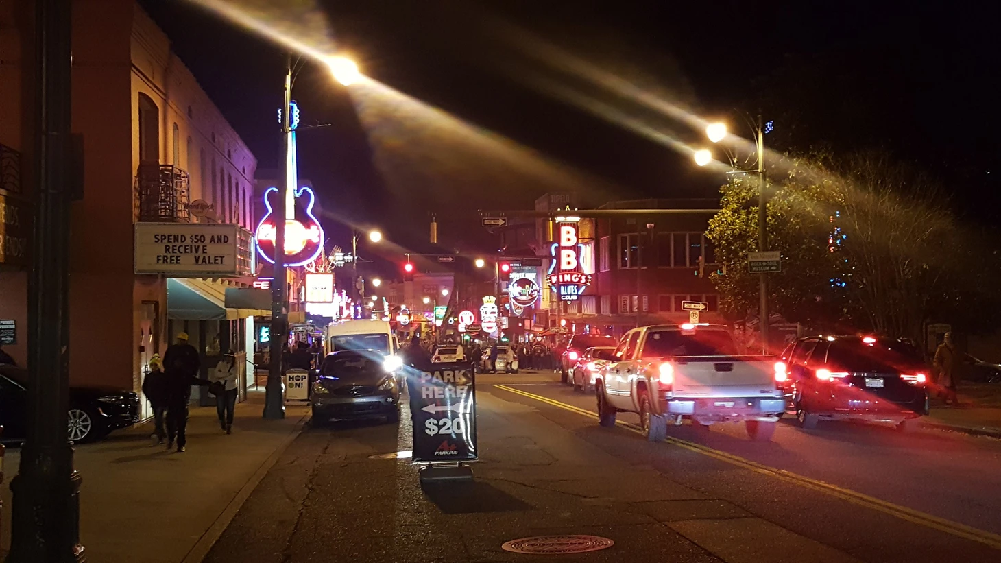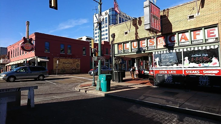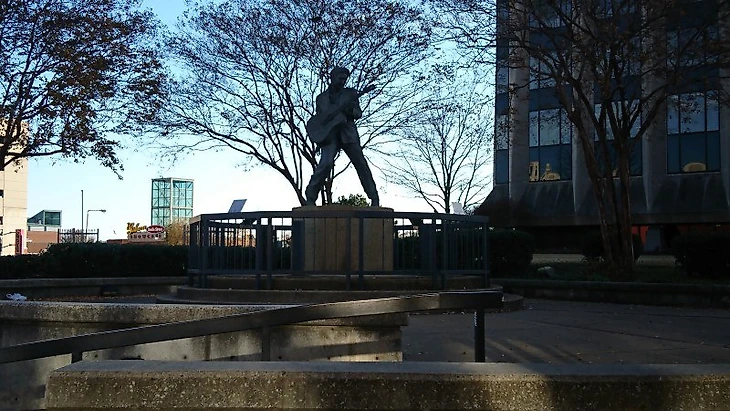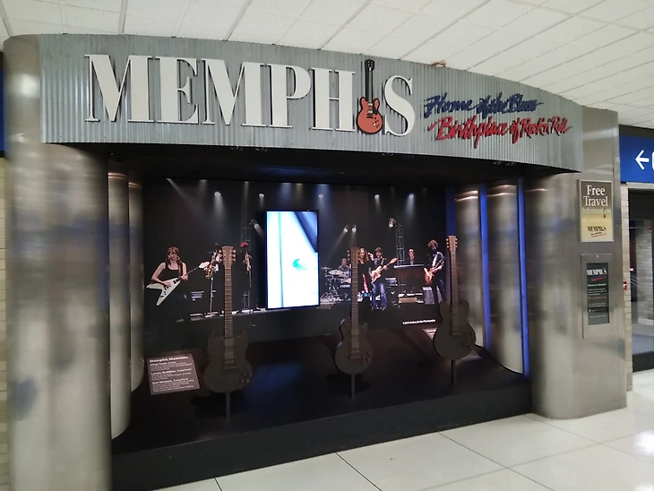 Даунтаун Мемфиса тоже оставил в целом приятное впечатление. Очень маленький, уютный, ранне-осенний по нашим понятиям (облетающая листва – вот это вот все), и – главное - весь пронизанный музыкой. Мемфис считается родиной блюза, рок-н-ролла и соула, тут в свое время вырос и начал карьеру Элвис – об этом написано просто повсюду, его памятник есть в центре, даже в аэропорту есть стенды посвящённые Элвису лично и музыке вообще, с какими то раритетными гитарами и т.д., чтобы прилетающие сразу бы понимали куда прилетели. Ну и B.B.King и многие другие звезды блюза, соула и кантри имеют большое отношение к городу. И по всему городу всюду написано что Мемфис это "Home of the Blues" and "Birthplace of Rock and Roll». Правда соседний Нэшвилл пошел куда дальше и просто называет себя Music City – на всех табличках только Music City – например, вы въезжаете в центр Music City – при том что Нэшвилл известен по большему счету только кантри – а это далеко не вся Music – а Мемфис вроде как раз более разносторонний в этом плане.