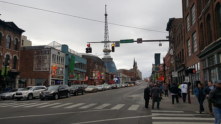Мемфис не такой пафосный – но тут главная пешеходная улица, местный Арбат, носит чисто музыкальных характер – сплошные музыкальные магазины, уличные музыканты, музыкальные кафе и рестораны (пообедал перед игрой в Hard Rock Café с видом на Blues Café через дорогу). Главная достопримечательность – фабрика по производству гитар Gibson, ну и все в том же духе. Весьма необычно. В даунтауне Music City на следующий день ничего такого не видел – там даунтаун напоминает гораздо более крупный и намного более деловой центр – сплошные небоскребы и административные здания, и минимум жизни в выходные (если бы не футбольный матч там было бы наверное совсем глухо), все красиво – но строго. а вот Мемфис показался куда более олд-скульным, милым, уютным и каким-то ламповым – раз уж мы тут про музыку. Приятно было окунуться в его атмосферу.