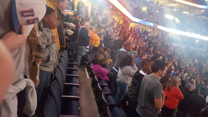 Хотя конечно далеко не все – по всему городу гуляли сотни болельщиков в синих майка Стэфа Карри. Других особо не заметил. Многие гуляли группами – вероятно приехали откуда то на игру, некоторые поодиночке или парами – вероятно местные. Болельщиков ГС было довольно много – но не столько сколько на следующий день я видел фанатов Денвера в Нешвилле, но об этом позже. Отличительной особенностью Мемфиса было то, что все фанаты до 12 лет были исключительно в форме Уорриорз и были явно местные. Так было и на арене – практически все дети которых я видел были в майках Карри – они там были просто повсюду. Даже многие отцы пришедшие в форме Гриззлис вели за руку пацанят и девчонок в голубых майках с цифрой 30. В общем думаю лет через 5-10 есть все шансы что Уорриорз станут новыми Лейкерс, а Стэф новым Коби – когда все эти люди подрастут и станут активными пользователями сети)) вот наши нынешнее хейтеры тогда попляшут – наши молодые глоры задавят всех как количеством, так и напором, а Панченко придется переосмысливать понятие зомбодети)