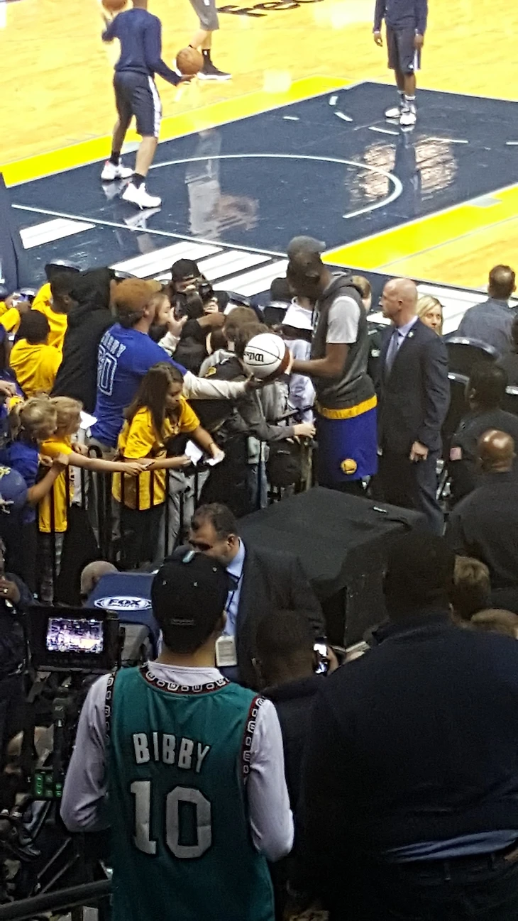 Когда Дюрант уходил с площадки я уже поднялся на свое место и увидел что Дюрант в отличие от Стэфа и Зазы решил все же детишек удовлетворить и дать автографы всем желающим. Пусть даже на майках Карри. Мне что-то стало им завидно и я подумал может тоже спустится и подписать все же свой плакат. Но пока я думал – он всем подписал и ушел. Зато Томпсон тоже не остался безучастным к детям и в итоге свой плакат я у него все же подписал) не знаю зачем – ну пусть думаю память о поездке будет. Потом правда жалел об этом – вместо того чтобы этот плакат там и выкинуть где нибудь пришлось его тащить сначала в Нешвилл, потом в НЙ и потом в Москву)
