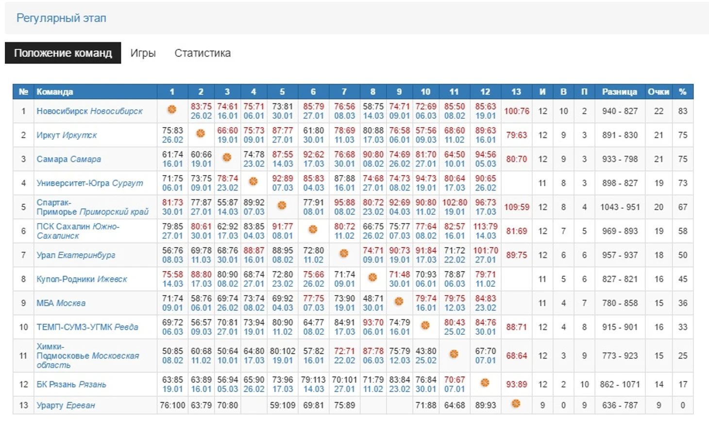 Три победы в четырех матчах позволили ижевчанам взгромоздиться на восьмое место в таблице. А плотность команд у черты плей-офф (на одну победу отстают МБА и «Темп-СУМЗ-УГМК», на две — «Химки-Подмосковье») обещает немало интересного после Нового года и здесь.