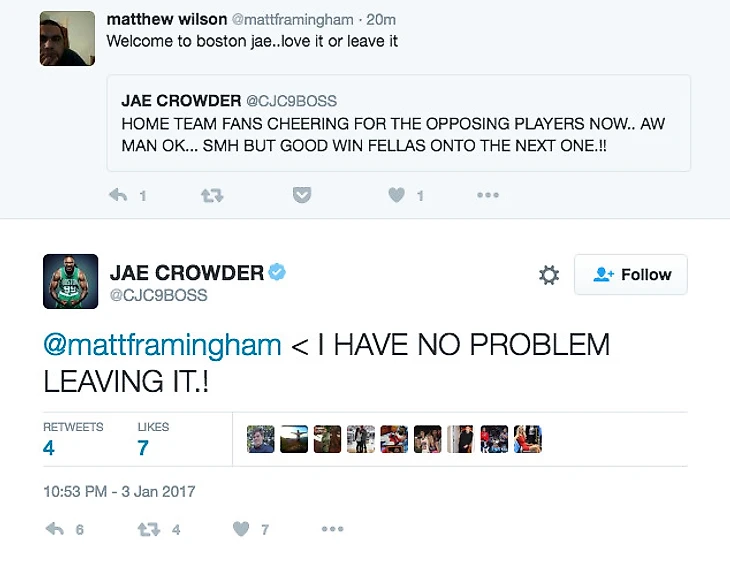 Болельщики «Селтикс» достали даже игроков «Селтикс». После того как зал начал подлизываться к Гордону Хэйворду, Джей Краудер не сдержался в твиттере.
