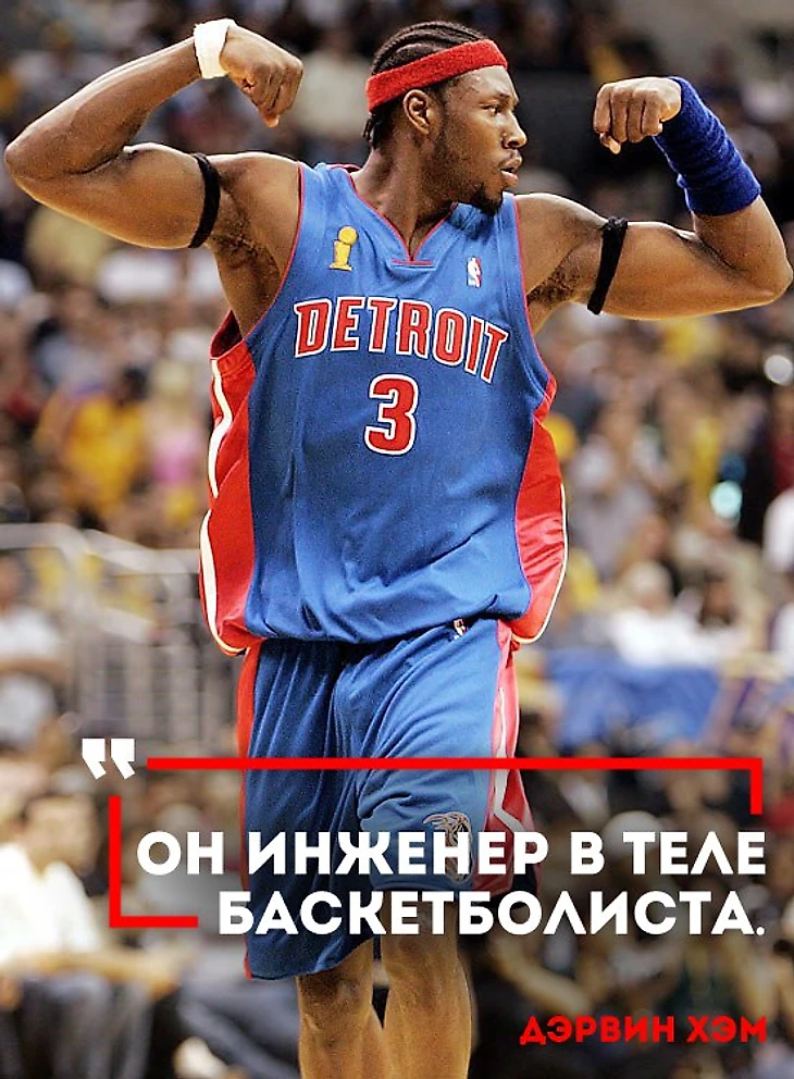 Шикарного афро больше нет. В его темных, густых волосах видна проседь, напоминающая о возрасте бывшего игрока «Пистонс». Однако все, что находится ниже головы, говорит нам о его прекрасной физической форме.