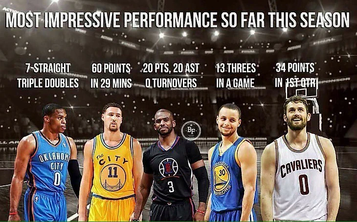 Тем, кому собирать двузначные показатели по передачам и подборам не позволяет то ли совесть, то ли природная ограниченность, по плечу более привычное баскетбольное занятие – набор очков. Так, например, Кевин Лав набрал 34 очка за четверть, а Клэй Томпсон набросал в кольцо соперников (нет, они не из Нью-Йорка) 60 очков за жалкие 29 минут. Что еще более удивительно, помимо Томпсона, заветный рубеж в 50 набранных очков в этом году пересекли еще 8 игроков.