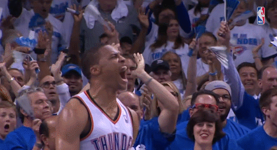 • Когда Расселл Уэстбрук сходит с ума и начинает выкрикивать фразы на всех языках мира после важного удачного броска: