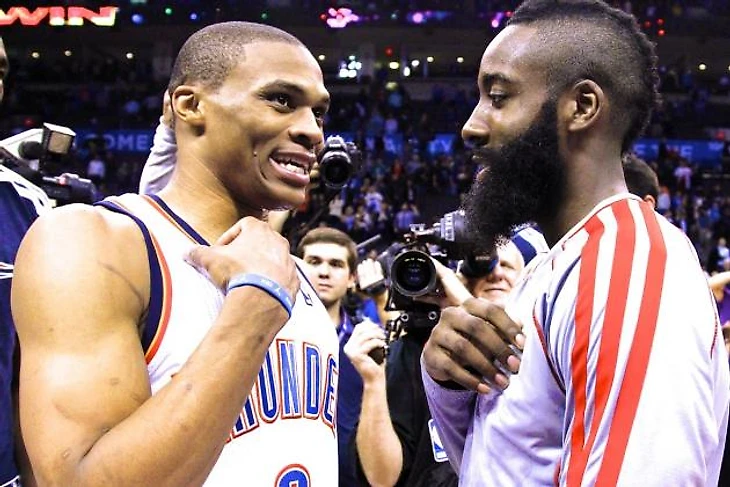 Решил начать с тех, кто мне не нравится. Один меня дико бесит тем, что вокруг него собрали команду снайперов, и он штампует дабл-даблы, при этом совсем не проявляет интереса не защищается. Второй бесит своими трипл-даблами. Часто в конце игры мы можем наблюдать, как Рассу 1-2 подборов не хватает, и он лезет отбирать подборы у "больших". Вы можете сказать, что Уэстбрук работяга и т.п., но посмотрите где сейчас Оклахома-сити. У "черепашки" плюс ко всему реализация держится 10 из 40 в больших матчах. Почему же я включил этих товарищей в один ряд? У Уэстбрука 5.5 потерь в этом сезоне при 10.1 аст, а у Хардена 5.7. И где здесь вы увидели МВП? Посмотрите игры Криса Пола, который 15-20 аст отдаёт, а мяч НИРАЗУ!!! не теряет. Поэтому Хардену нужно начать защищаться и перестать орать, что он лучший игрок лиги, а Рассу перестать играть только на трипл-даблы, у него команда состоит из Оладипо, Адамса, Кантера и Роберсона. Эта команда должна уверенно выходить в ПО с запасом перед Ютой, Денвером, Сакраменто (хотя перед двумя последними, если быть честным, запас есть, а Юта очень хороша в этом сезоне). 35-25 для такого состава далеко не фонтан. У "ракет" же всё хорошо, но команда шла лучше 2 года назад, а в плей-офф столкнулась с ГСВ. Думаю ЛАК или САС пройдут их в 6-7 матчах.