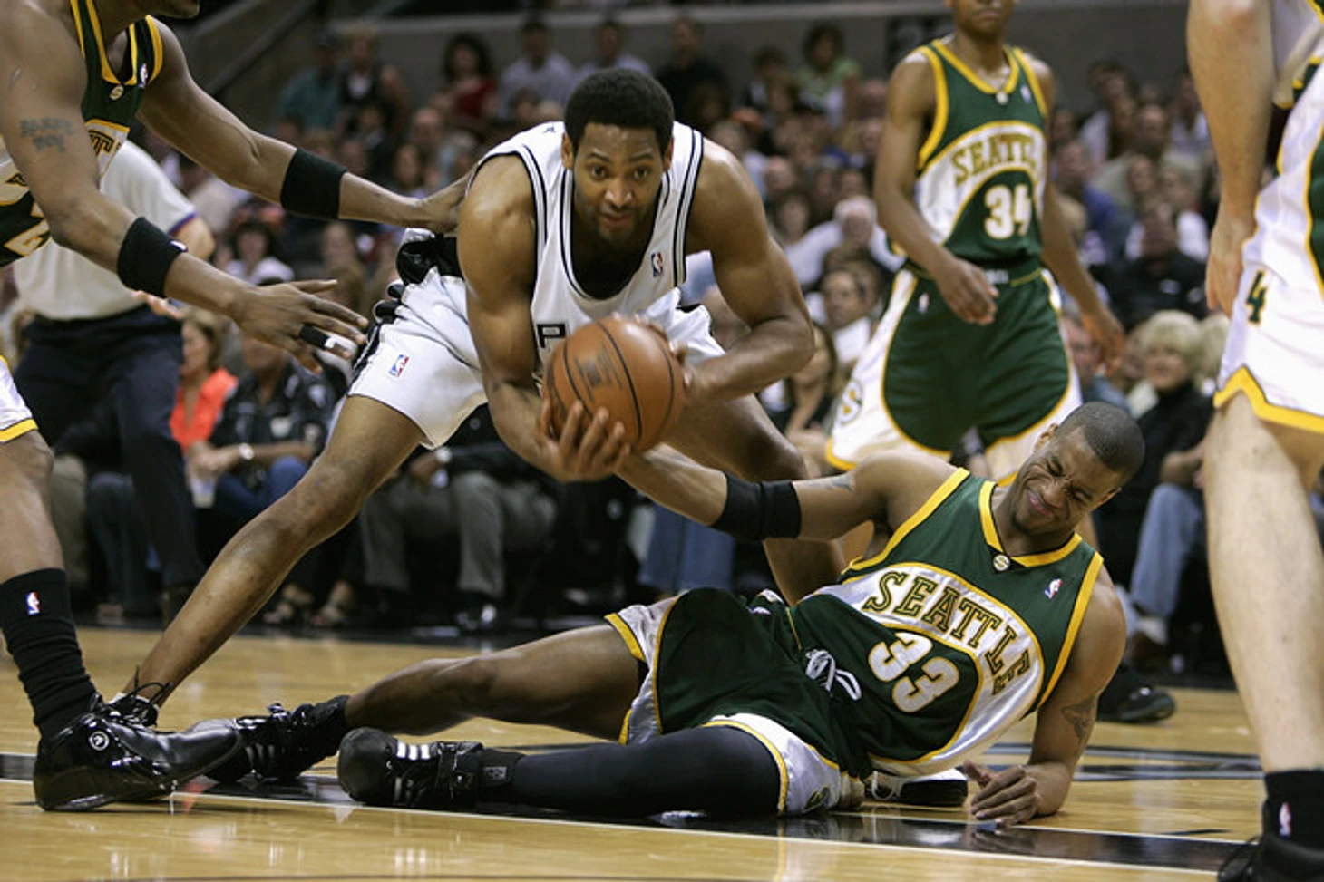 Тут возникает парадоксальная ситуация: несмотря на то, что в «Сперс» никогда даже близко не было игроков калибра Данкана – он умудрялся вытягивать своих оруженосцев на такой уровень, что о них просто нельзя не написать! Вот, к примеру, Назр Мохаммед. Что такое Назр Мохаммед? Я не хочу ничего о нем писать! Что о нем можно написать? И при этом Мохаммед – очень важное (а в жестоком рыгалове с «Детройтом» – одно из ключевых) звено в чемпионских «Сперс»-05... и о нем по-прежнему нечего написать. Разве же сиял бы Мохаммед в плей-офф так ярко, играй рядом с ним талантливейшие Вин Бейкер или Антуан Уокер?