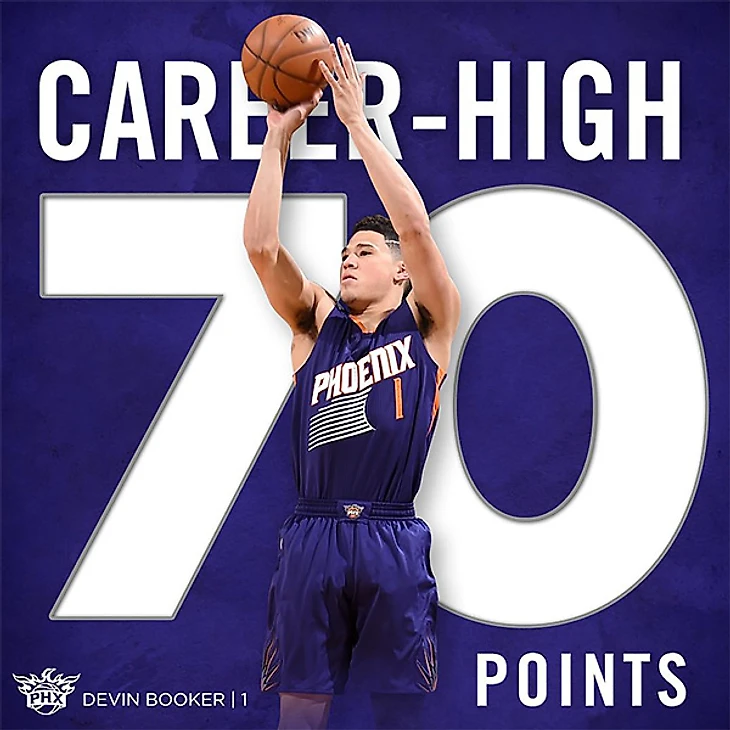 За 71 год существования НБА было всего 10 матчей, в которых кому-то удавалось набрать 70 очков. Сегодня мы увидели 11-ю. 20-летний защитник «Финикса» Девин Букер – в одном ряду с 5 членами Зала славы баскетбола.