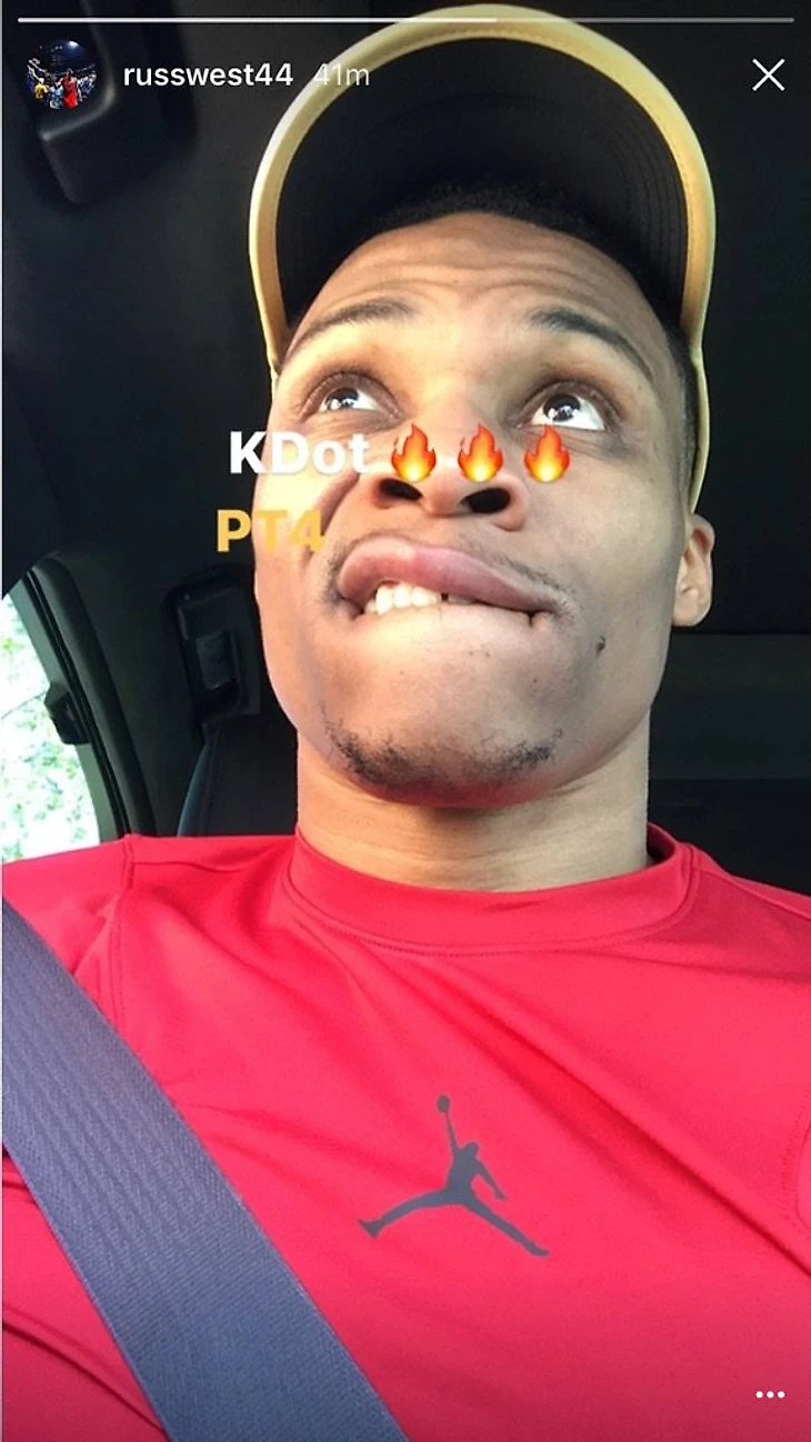 И Рассел Вестбрук, говорит YG, “ Получил сердце льва”.Возьмите новую песню Кендрика Ламара ,The Heart Part 4 - волнующуюся песню про то , что кто-то может быть или не быть Дрейком, где К.Дот поет о Вестбруке лишенном помощи КД : Роли поменялись, уроки усвоены, это мой лучший образ,Ты оттолкнул меня, а теперь собираешься встретиться с Вестбруком.