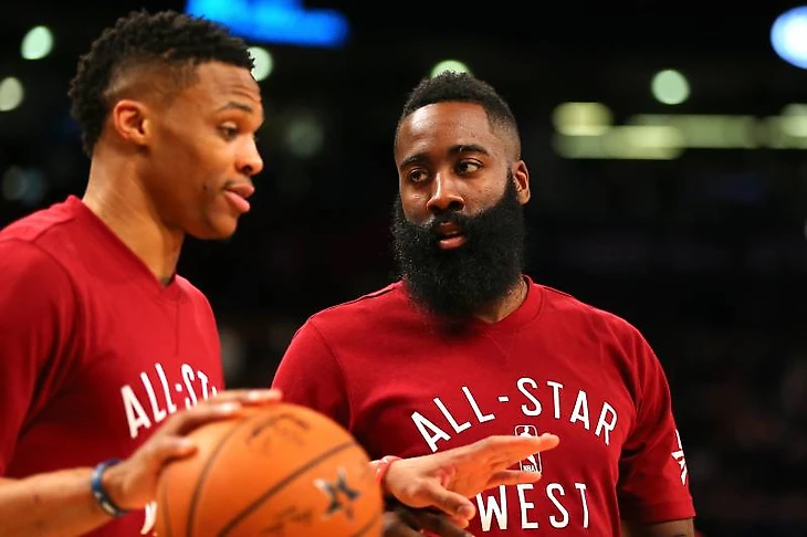 Издалека лицом к лицу, Уэстбрук и Харден более чем достойны, чтобы принять честь, которая как можно ближе приблизит их к Залу славы. Но вот что связано с наградой MVP NBA: Это похоже на голливудский сезон награждений, теперь полный зрелищности. В этом году будет красная ковровая дорожка, и вспышки вспышек, и знаменитости, надутые для камер, кроме самих игроков, являются звездами. Эта превосходная НБА может сделать великого игрока знаменитым игроком ... а знаменитый игрок - легендой.