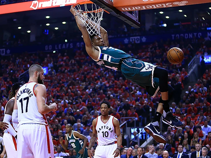 Ноги Адетокумбо обладают еще одним необычным свойством: ему практически не требуется времени, чтобы сгруппироваться для повторного прыжка. Грек не устает поражать всех невероятной серийной прыгучестью.