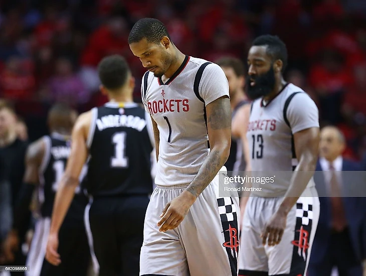 У Хардена в течении всей серии был только верный Ариза. Бросающий, забивающий, защищающийся. Он был везде, где мог принести пользу. Где-то там, рядом, эмоционально убитый Патрик Беверли, на морально-волевых отыгравший четвертый матч, и не всегда попадающий, но умирающий в защите Эрик Гордон.
