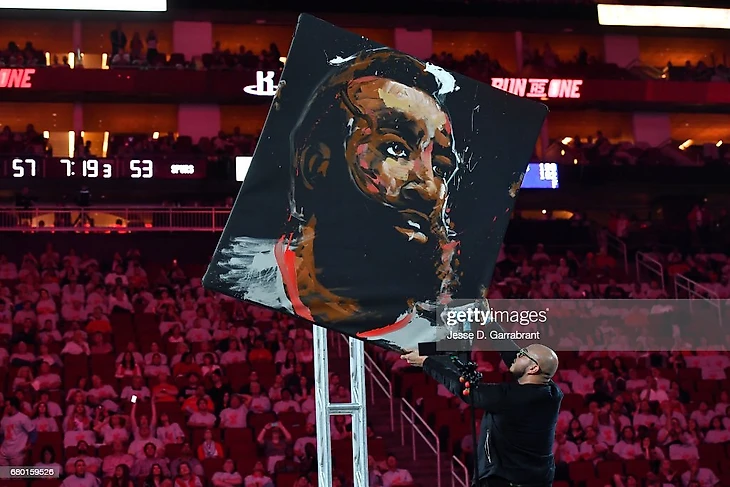 Аналогий между теми шестью матчами и схваткой в Техасе на самом деле гораздо больше. Особенно что касается того, что действительно влияет на победу, все это лежит на поверхности. И ограниченность людским ресурсом, потеря важного элемента игры из-за травмы, и усталость… Многое просто под копирку. И первейшая аналогия – сравнение ЛеБрона Джеймса в его Богоподобном режиме той финальной серии и Бородатого Пикассо, важнейшего составляющего волшебной и яркой Хьюстонской атаки.