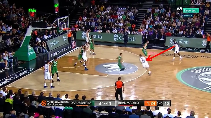 Но и, помимо Юля, мадридцы часто атакуют с дистанции. Они чаще других участников Финала четырех используют специальные комбинации с акцентом именно на бросок (пик-н-попы, выбегания и т.п.). Здесь стоит обратить особое внимание на роль Джейси Кэрролла. Американец является одним из сильнейших снайперов на континенте. В плэйбуке «Реала» за ним закреплены комбинации с выбеганием.