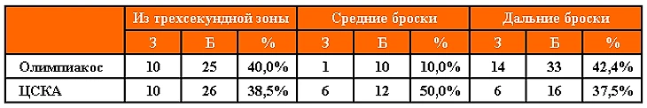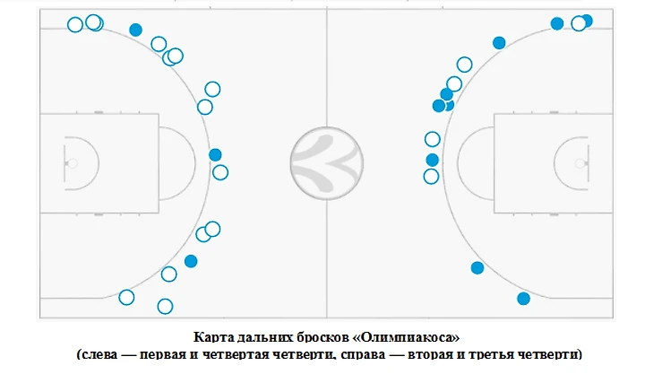 Но уже в плей-офф «Олимпиакос» включил дальнобойную артиллерию и не растерял этот настрой и в полуфинале. Хотя и здесь мы увидели присущую им нестабильность. В середине игры с ЦСКА (вторая и третья четверть) красно-белые показали отличный процент реализации — 67% (10 из 15), а вот в дебюте встречи и ее концовке их успехи были намного скромнее — 22% (4 из 18).