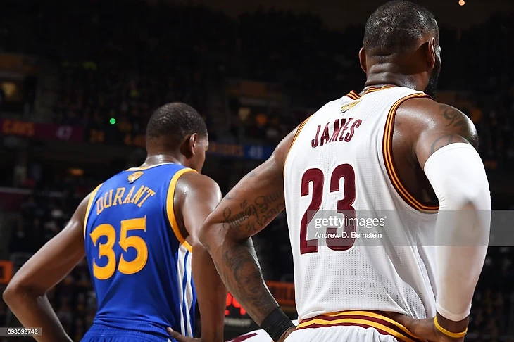 ЛеБрон Джеймс играл в Кливленде с 2003 по 2010 год, если вы забыли. Он играл в команде с Мо Уильямсом, святыми мощами Шакила О`Нила, прахом Иглаускаса, Делонте Уэстом, и прочими потрясающими персонажами мирового баскетбола. Кевин Дюрэнт играл с Расселом Уэстбруком, в основном. Т.е. вроде как с регулярным претендентом на MVP сезона. Да, там были еще Серж Ибака, Джеймс Харден, старательные парни вроде Сефолоши, Уэйтерса, Адамса… все зависит от года сборки модели Тандер. Неизменно было лишь то, что Кевин побеждал с завидной частотой.