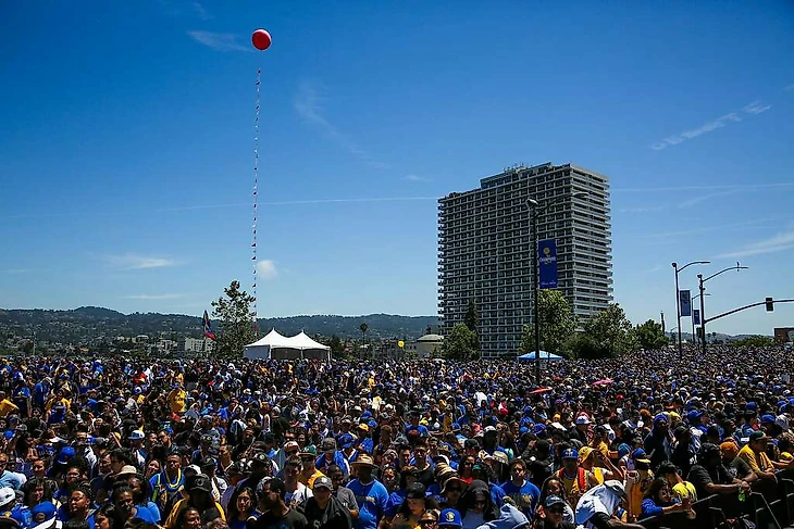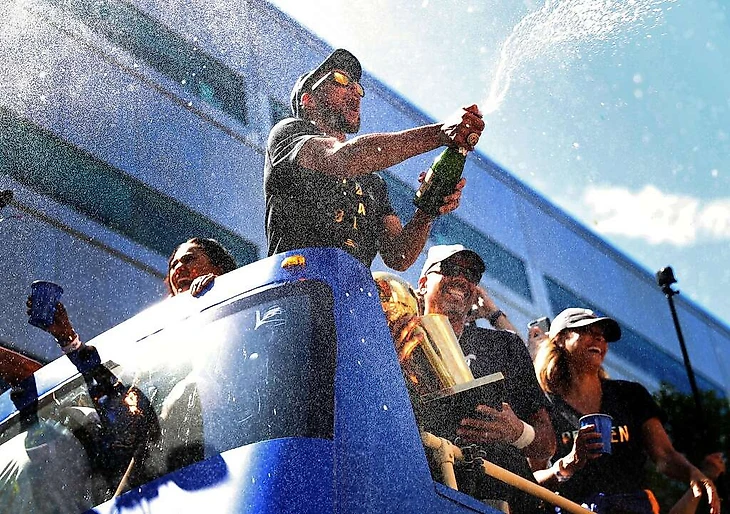 Игроки "Голден Стэйта" продолжали праздновать уже на сцене.