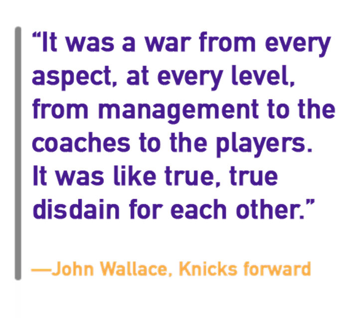 «Это была война в каждом аспекте, на каждом уровне, от менеджмента к тренерам и игрокам. Это было реальное, истинное презрение» – Джон Уоллес, форвард «Никс»