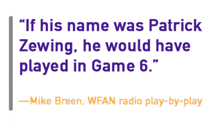 «Если бы его имя было Патрик Зюинг, он бы сыграл в шестом матче» – Майк Брин, комментатор радио WFAN.