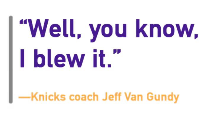 «Ну, вы знаете, я накосячил» – главный тренер «Никс» Джефф Ван Ганди.