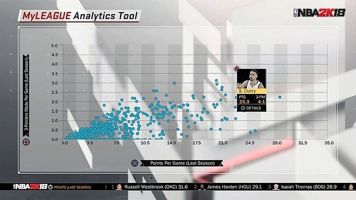 Будет доступна возможность анализировать различные показатели в каждом компоненте у определенного игрока. Вы можете отображать игроков на основе различной статистики, например выставить показатели игрока в перерасчете на 36 минут игрового времени. Вы можете уменьшить набор данных до последних 10 игр, последних 20 игр, домашних игр, игр в гостях, статистики этого сезона, статистики прошлого сезона или общей статистики за всю карьеру. Кроме того, вы можете создавать диаграммы, задавая такие элементы, как зарплата, возраст, рост, размах рук и т. д. Мы стремимся предоставить вам богатый и глубокий опыт франчайзинга на рынке.