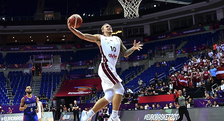 Да-да, он для меня значит больше Кристапса Порзингиса. Почему? Во-первых, Янис реже испытывал проблемы с персональными замечаниями, что стало ахиллесовой пятой форварда "Никс". Во-вторых, Тимма приезжал в статусе новичка клуба Евролиги, а до этого зажигал в "Зените". Хоть клуб из Питера и может вырасти во что-то многообещающее, но это всё же пока не уровень крепкого европейского трепателя нервов типа "Брозе". В-третьих, игра Латвии была завязана на развитии быстрой атаки (не только отрывы, а вообще вариант нападения, когда 1-2 пасами за 10-12 секунд игрок выводится на открытую позицию или получение мяча в проходе) не меньше, чем на доминировании Кристапса. И здесь скорость и мощь 25-летнего светловолосого парня давала серьёзное преимущество. Яниса вы нередко видели при исполнении данка или маневренного прохода к кольцу.