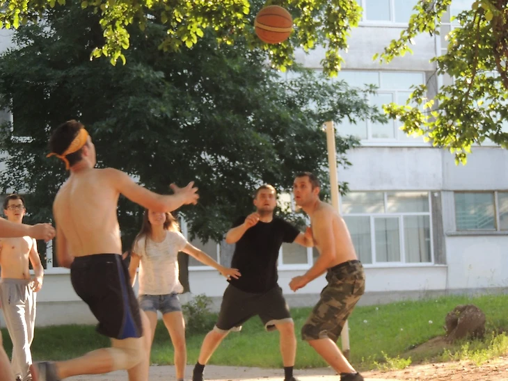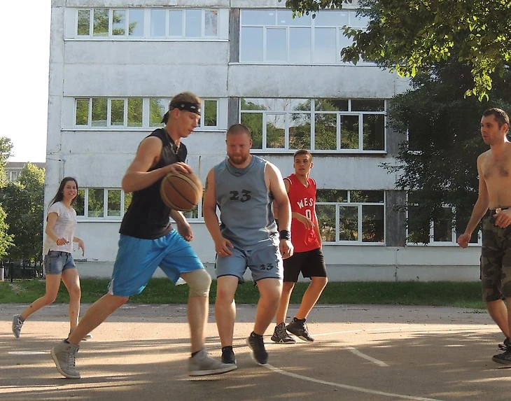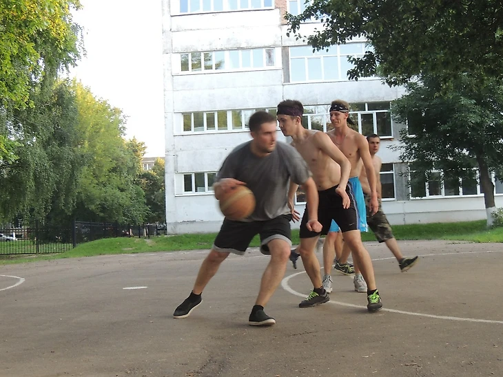 Сколько нас играло? Лично я на двух площадках школы хоть один раз сыграл с 70 с лишним самыми разными людьми от 14 до 30+лет. По началу было непросто подтягивать народ, порой собиралось 3-4 человека, даже 1 на 1 играли нередко, но массовость была делом времени. Не все тянули физически, не всем нравилась жёсткая уличная игра, кто-то стеснялся своего уровня, находились более приятные альтернативы баскетболу… Ну а мы просто приходили играть в своё удовольствие, неважно, сколько ребят собиралось. В итоге костяк наших регулярно играющих к концу лет стал составлять около 20 человек. Конечно кто-то мог играть лишь 1 раз в неделю, но зато стабильно, кто-то мог хоть каждый раз, но порой был занят другими делами, у кого-то не получалось даже раз в неделю из-за работы... Всё равно в конечно итоге массовость поднять удалось. Игры на два кольца, даже с запасными стали регулярными. Три-четыре человека в последние 1,5 месяца ходили регулярно. Лично я за всё лето пропустил лишь 3 игровых дня. Настолько сильно полюбилось играть, что пару раз приходил и с температурой, слабый совсем, с больными коленями и разбитыми ногами, когда всё тело болело и хотелось выть от бессилия, что не могу прыгать и бегать полноценно, оказывать помощь на площадке. А как иначе, если ребята играть собираются, сидеть в стороне или не приходить не мог просто, хоть посмотреть хотелось. Пусть звучит пафосно, но баскетбол стал для многих наркотиком, выработалась зависимость. Сезон НБА закончен, чего дома-то сидеть, когда можно такое приятное с полезным для здоровья совмещать.