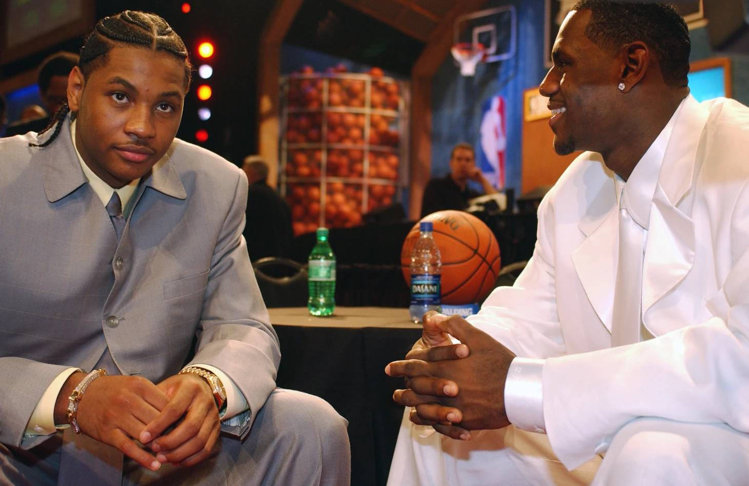 Джеймс и Энтони общаются во время перерыва на отдых в благотворительной встрече под эгидой Мэджика Джонсона. Это было летом 2003-го, когда обоих уже задрафтовали.