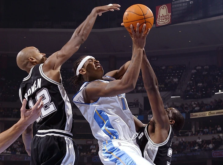 В первом своём матче в НБА Энтони противостоял «Спёрс», и, хотя попал лишь 4 броска 15, «Денвер» победил 80-72.