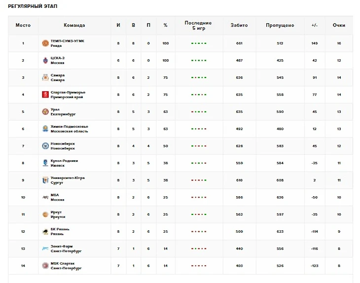 Самый впечатляющий старт удался команде из Ревды. За пять недель «заводчане» сыграли в чемпионате 8 матчей — и имеют 8 побед. Восьмая команда по итогам прошлого сезона сейчас явно настроена выступить куда успешнее. И пока устроенная летом масштабная перестройка однозначно идет ей на пользу. Правда, семь из восьми матчей «Темп-СУМЗ-УГМК» провел на своем паркете, но ведь этим преимуществом еще надо было воспользоваться, поэтому вряд ли подобные причуды календаря умаляют значимость побед ревдинцев над «Самарой», «Спартаком-Приморье» или «Иркутом».